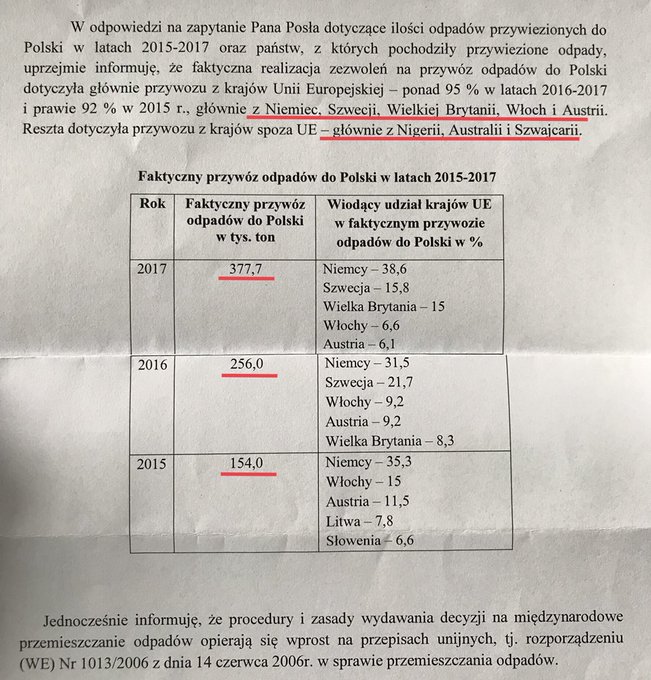 Straż Graniczna zatrzymała ciężarówkę. Kierowca wiózł śmieci z Niemiec: https://www.wprost.pl/kraj/10137510/straz-graniczna-zatrzymala-ciezarowke-kierowca-wiozl-smieci-z-niemiec.htmlPS. Komuś opłaca się transportować śmieci do Polski, nawet z antypodów. Zapewne niełatwe do utylizacji, a rząd to akceptuje. Wycinka puszcz, zablokowanie budowy elektrowni wiatrowych. dalsza rozbudowa